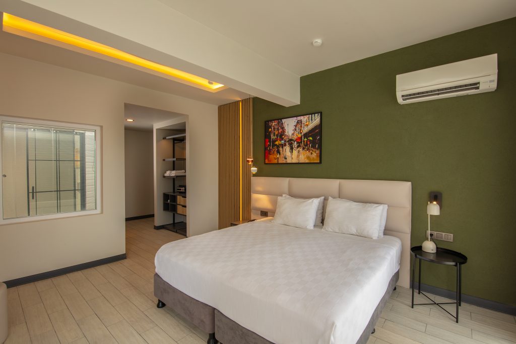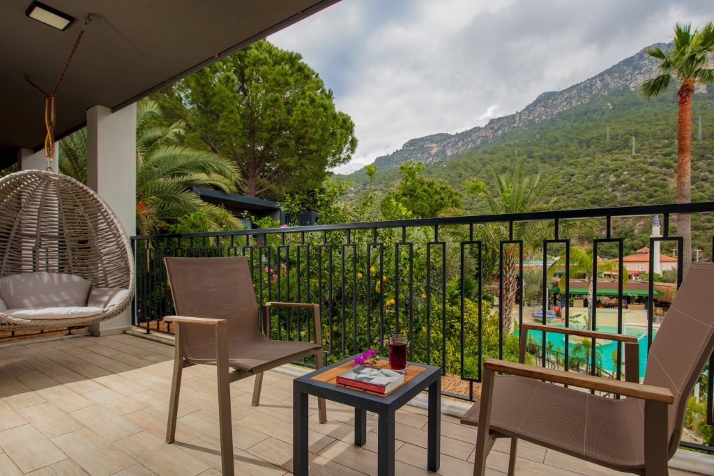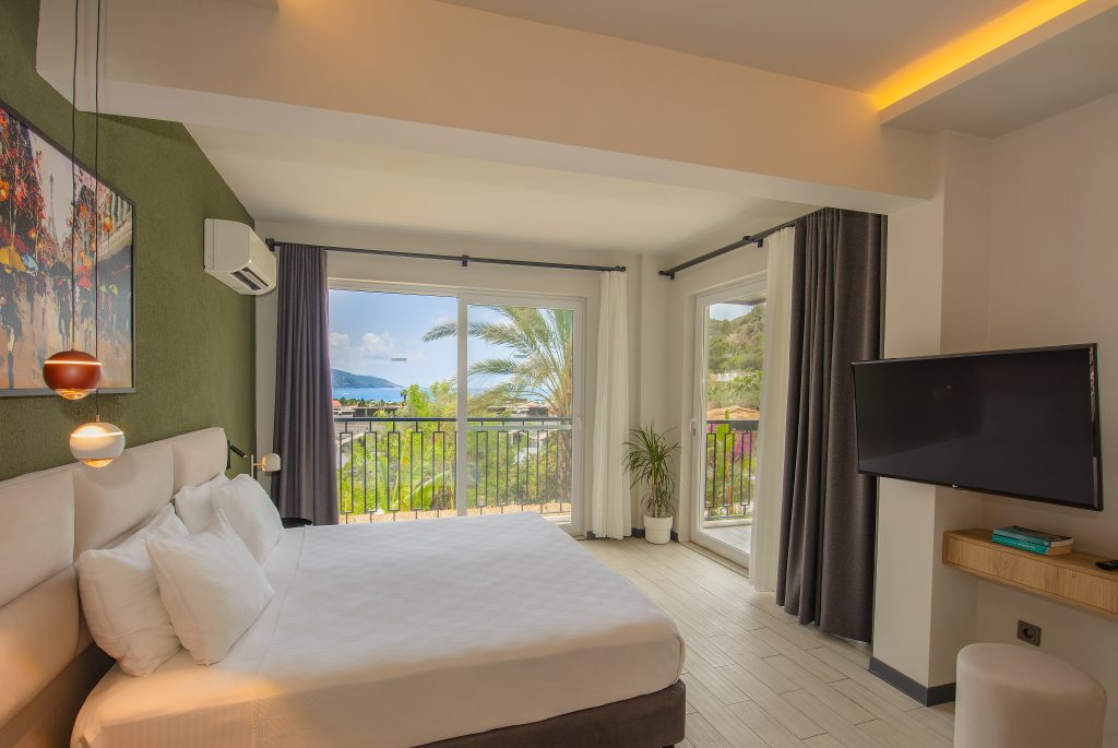 Bu özel dekore edilmiş odada, geniş bir balkon üzerinde salıncak ve spa küveti içeren bir özel banyo bulunmaktadır. Oda deniz manzaralıdır.